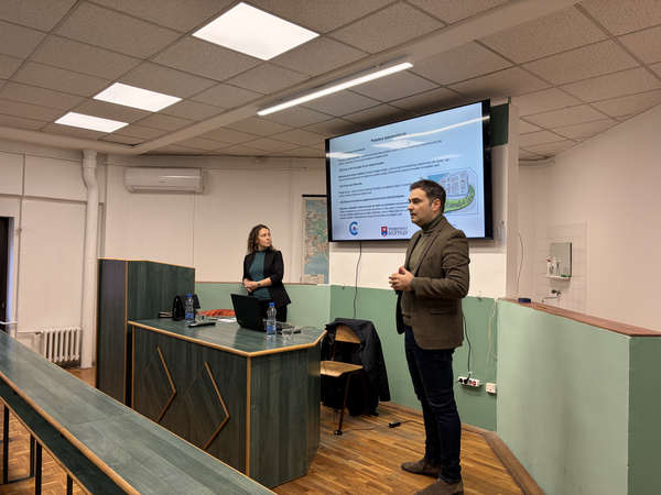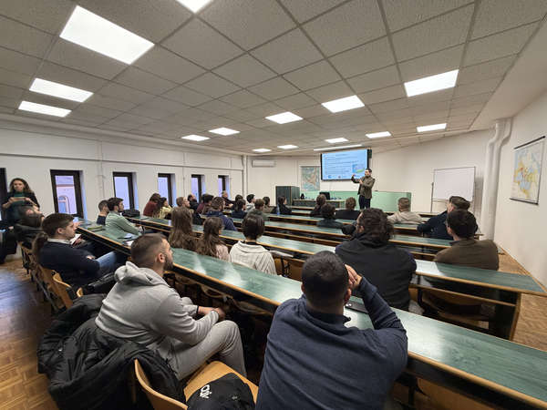 Презентацију је одржао господин Никола Савић, координатор пројеката Универзитета у Београду, који је присутнима представио могућности академске размене у оквиру европског програма Erasmus+, као и рад интернет платформе MobiOn, намењене пријави и праћењу мобилности.