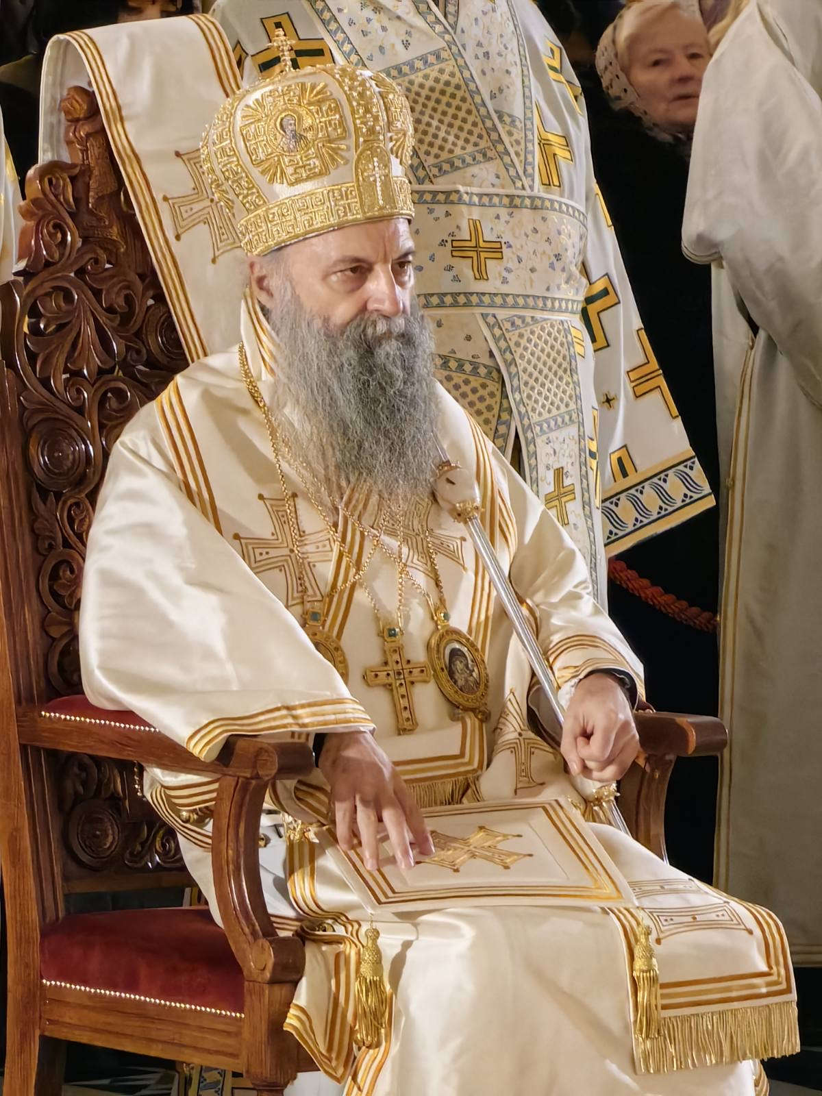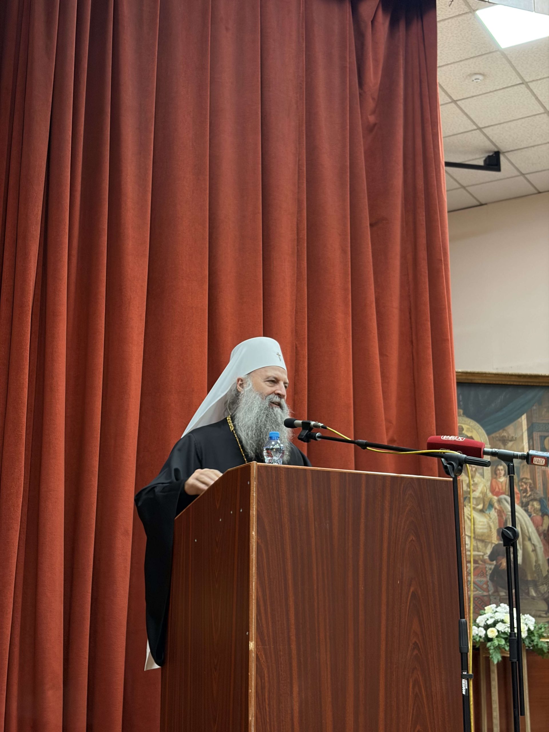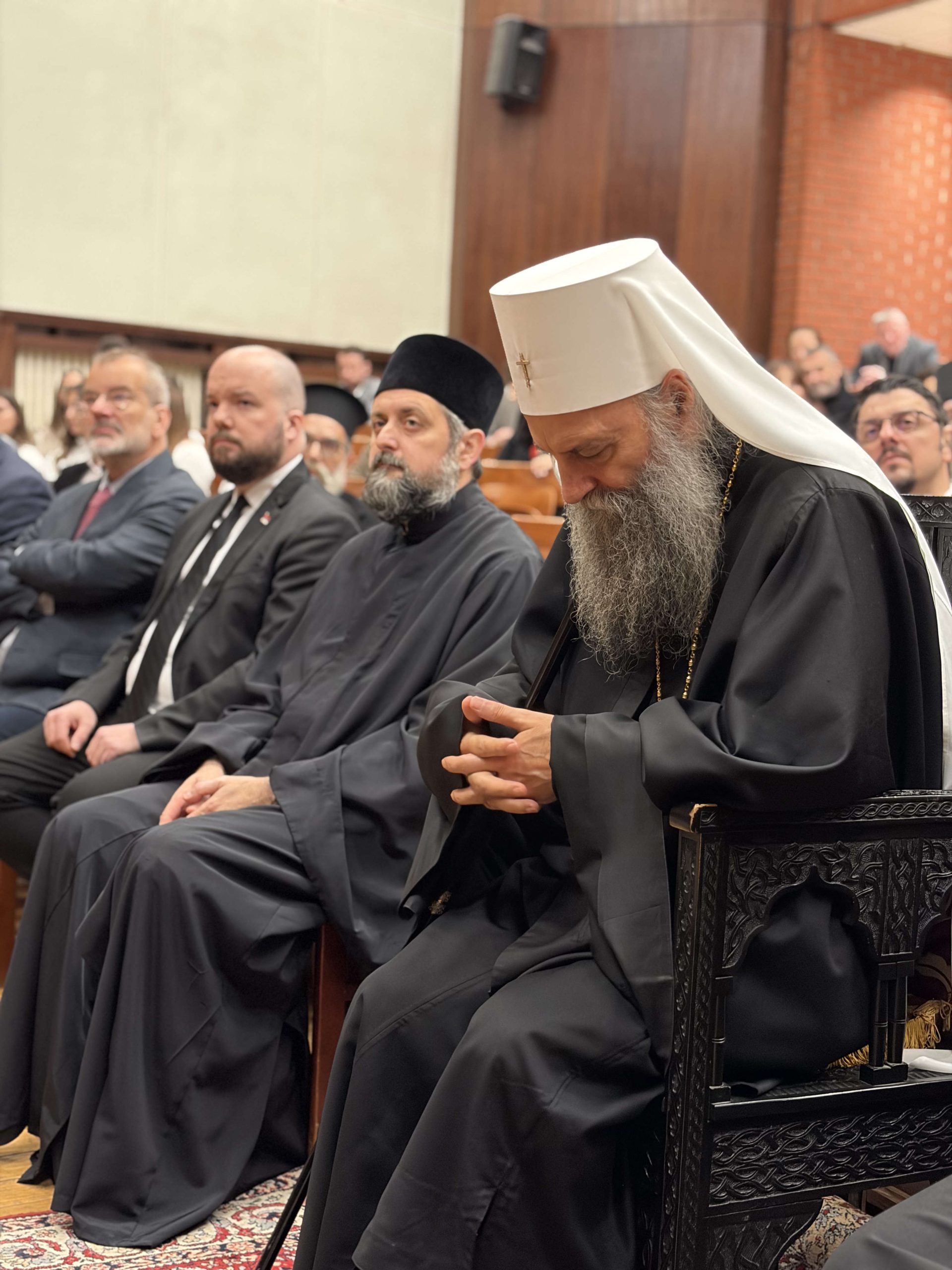 Потом се сабранима обратио Његова Светост Патријарх српски господин Порфирије, врховни покровитељ Православног богословског факултета у Београду. Светејши Патријарх је истакао да се личност Светога Саве не може разумети изван личности Господа Исуса Христа и Јеванђеља, чија је квинтесенција заповест о љубави. Нагласио је да је Свети Сава управо путрм љубави и мира постао учитељ свима, миротворац и сведок Христовог присуства у свету, те пожелео да и ми данас, будући надахнути његовим молитвама, ходимо путем љубави, истине и мира.