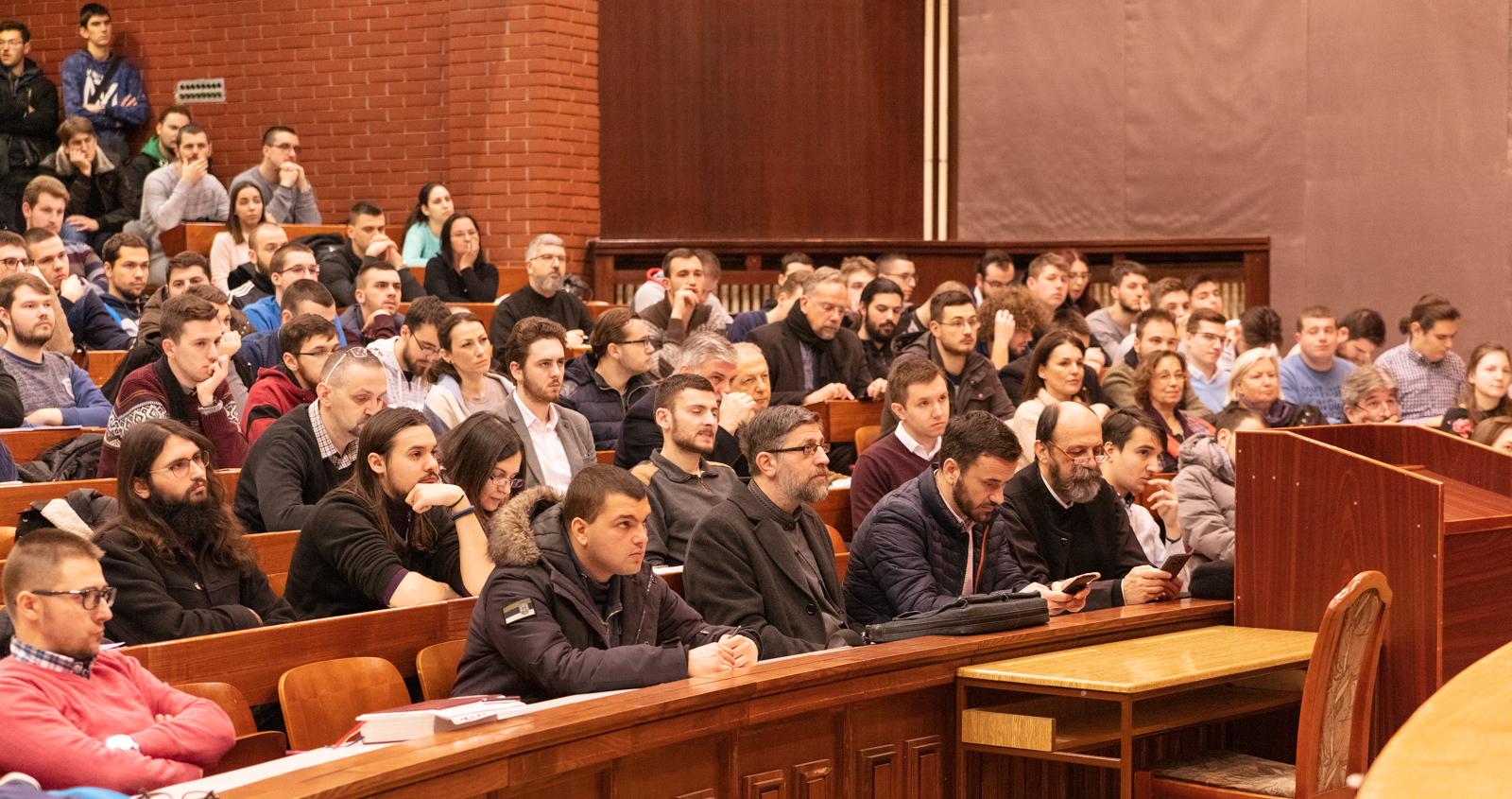 Предавању су присуствовали Његово Преосвештенство епископ западноамерички проф. др Максим, Његово Преосвештенство епископ франкфуртски и све Немачке Г. Григорије, професори, студенти и гости Православног богословског факултета у Београду.