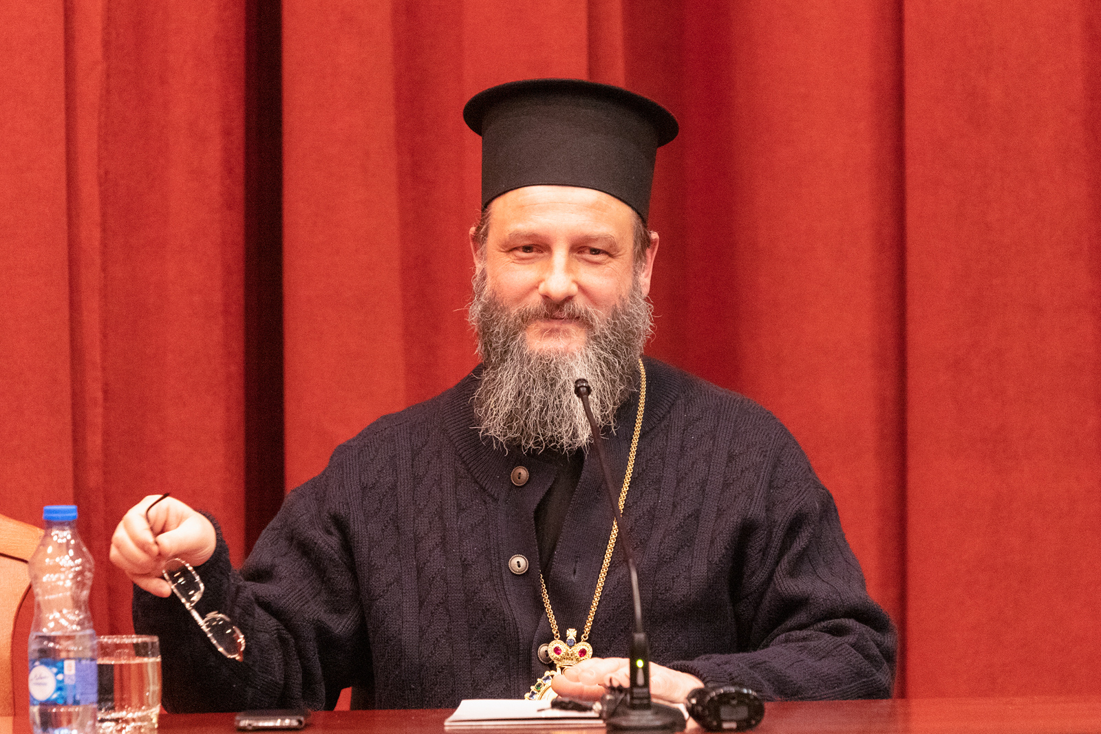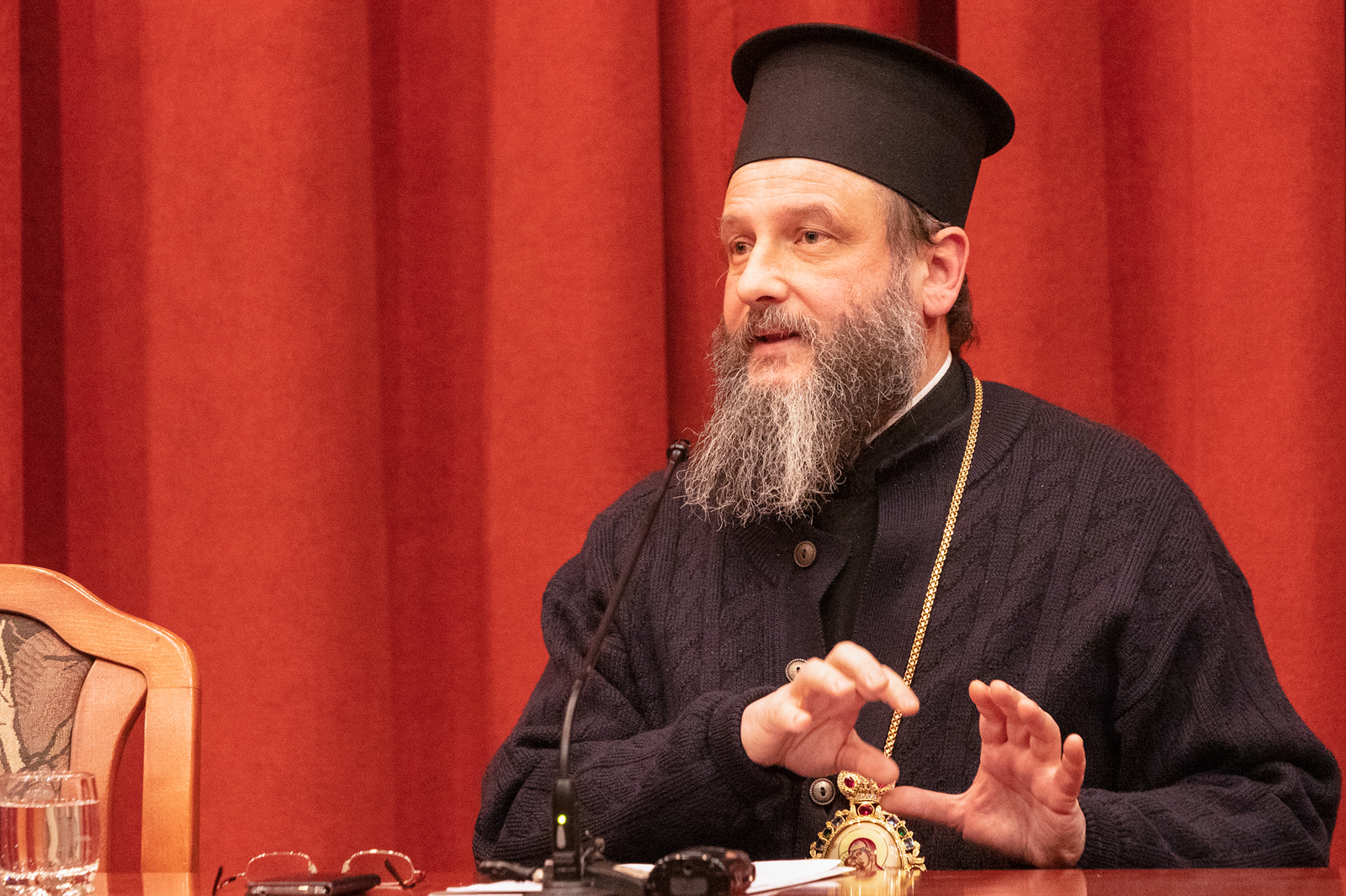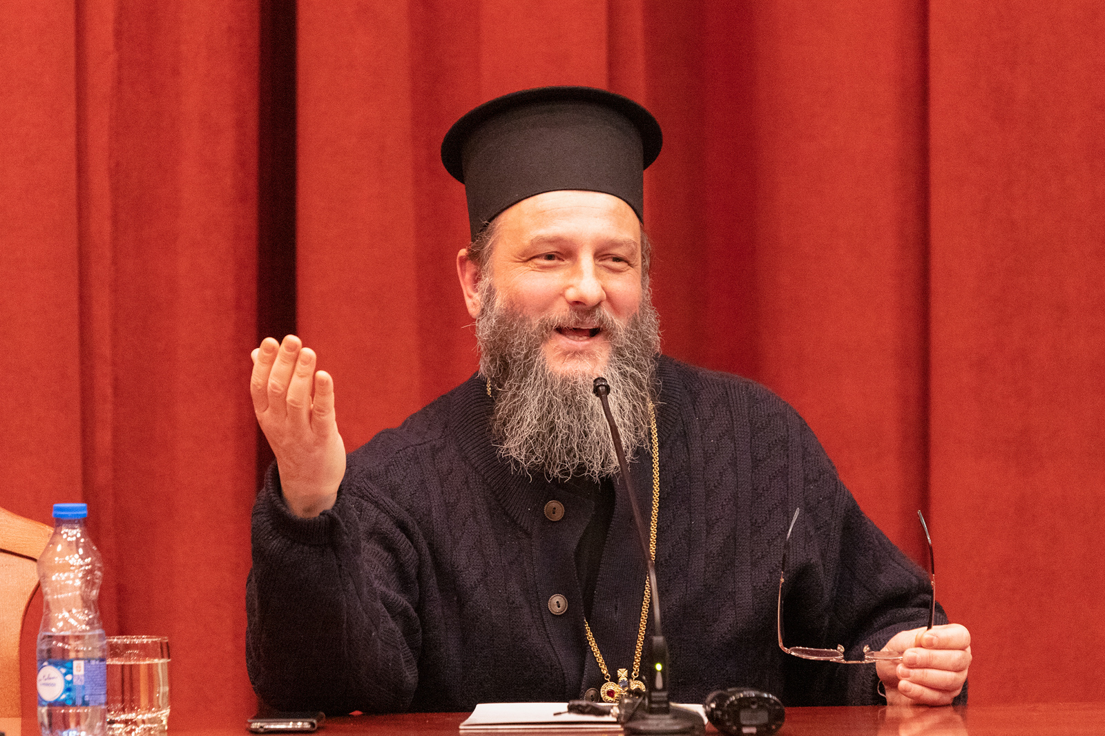 Потом се владика Јован захвалио на гостопримству и указаној могућности да одржи предавање на Православном богословском факултету. Рекавши о чему ће говорити, епископ Јован је објаснио зашто је изабрао баш ову тему и говорио о животу Светог Григорија Паламе. У предавању је био речено и о проучавању дела епископа Григорија и о паламитским споровима о благодати и обожењу. Владика је истакао значај подвига, преко којих се стиже до чистоте, да би Бог послао своју благодат. Било је речено о учењу Григорија Паламе о Божанским енергијама и о обожењу. Владика је у току излагања навео пример да у заточеништву није имао могућност да врши Евхраристију, те је истакао да је важно да тражимо Бога у свим животним околностима.